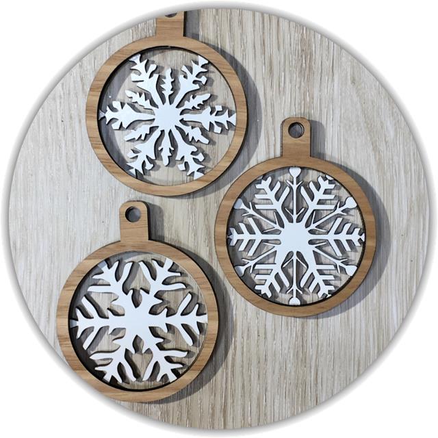 Limited addition snowflake baubles. Hand made snowflake bauble sets are made from MDF and high grade ply timbers. Each piece is made with care, so it can shine on your Christmas tree.